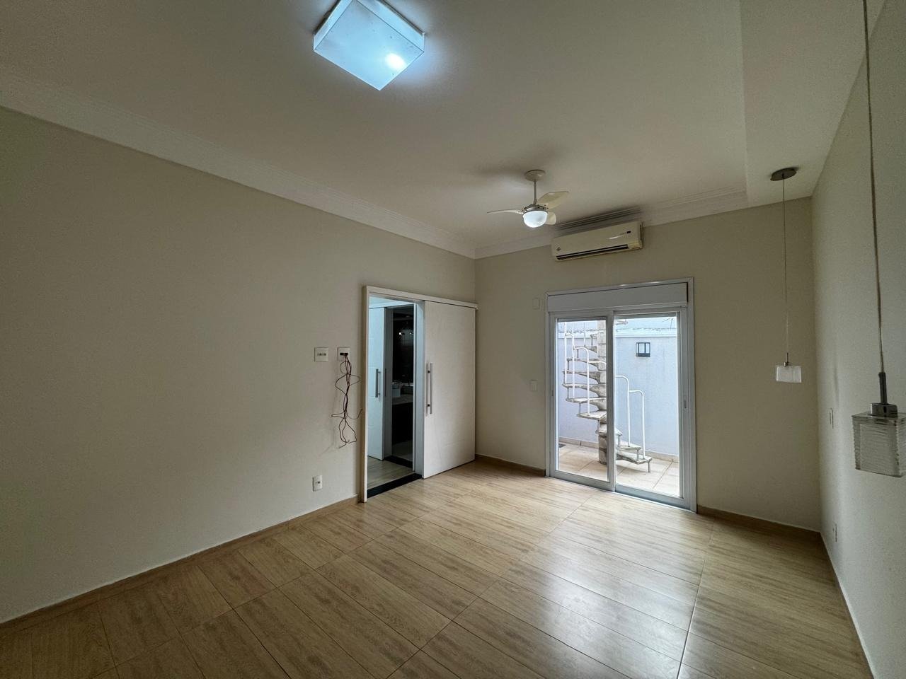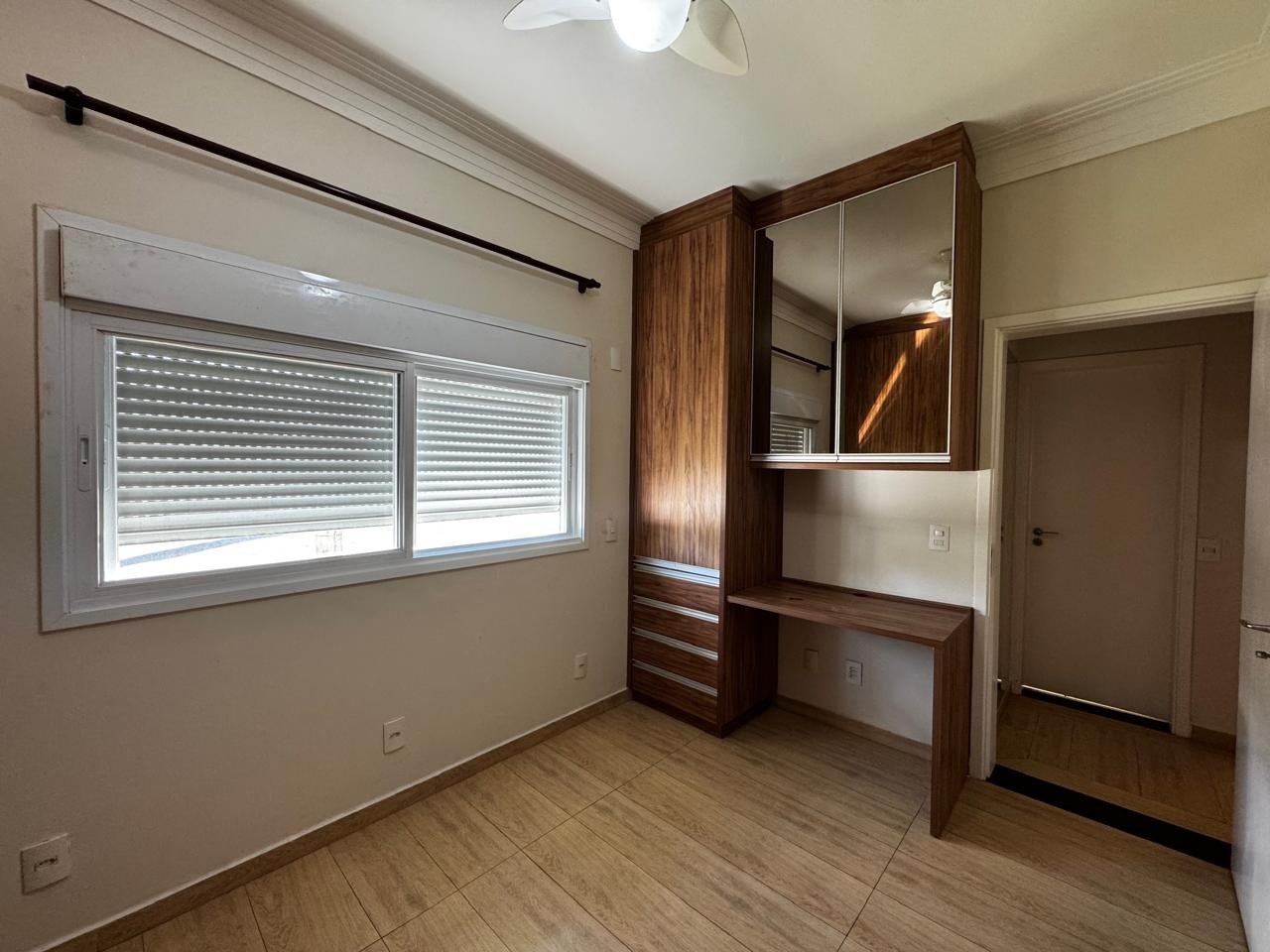 O quarto da frente é equipado com ar-condicionado, ventilador, armário planejado, cabeceira e escritório planejado.